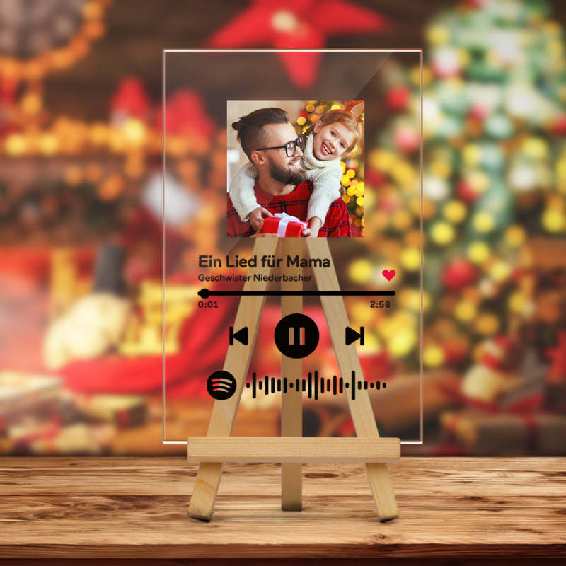 Father's Day Gifts Spotify Glass Art Custom Spotify Code Acrylic Music Plaque With Wooden Stand