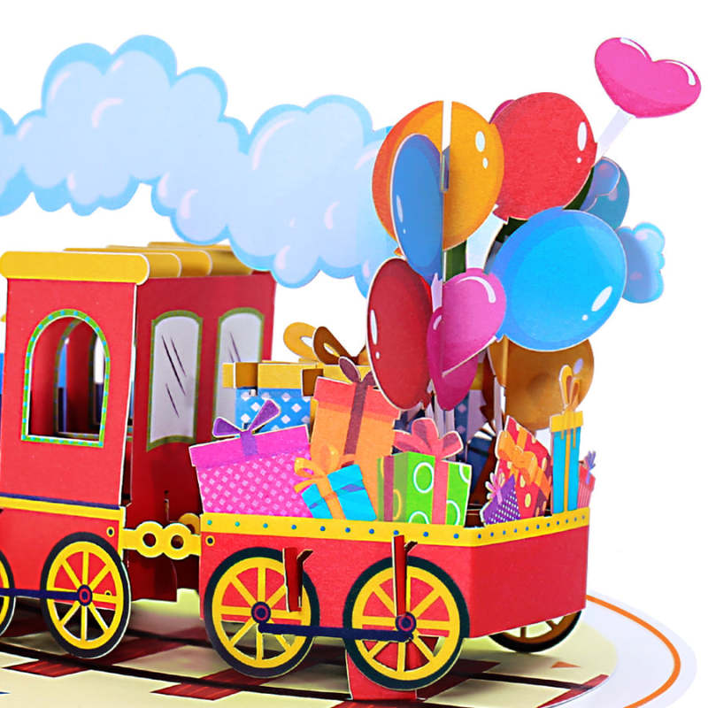 Happy Gifts Train Birthday Pop up Card Carte de vœux d'anniversaire 3D pour garçons
