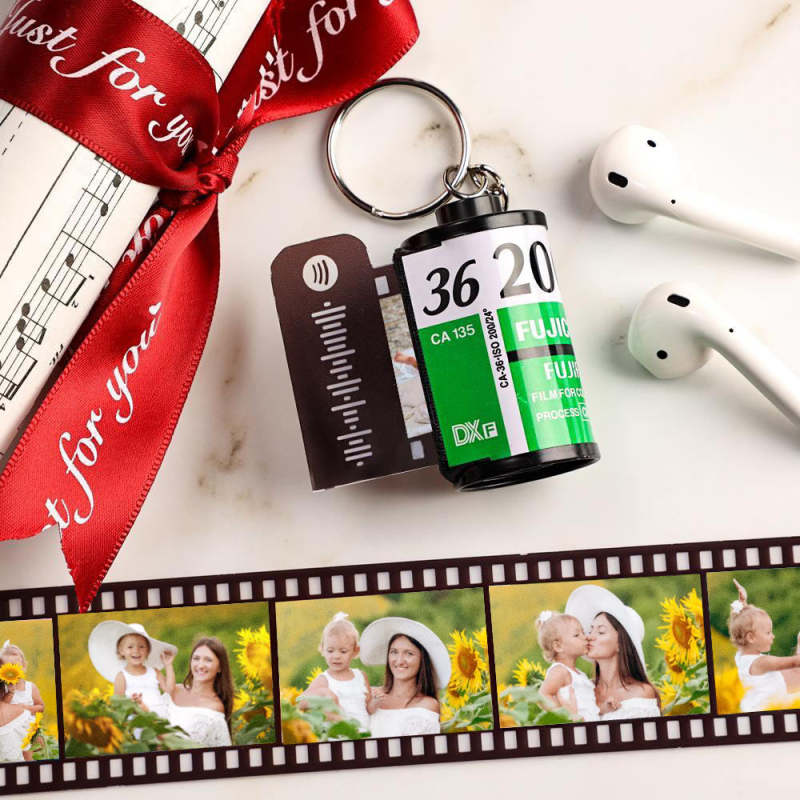 Mother's Day Gifts Spotify Code Scannable Custom Camera Roll Keychain for Love 5-20 Pictures Green Shell