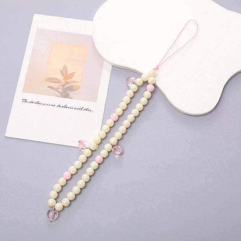 White Pearl Phone Charm with Pink Love Special Gifts for Her