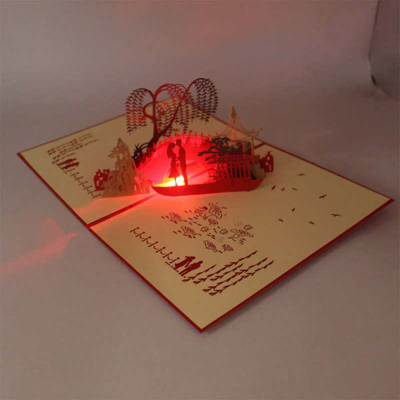 Alice Music Small Bridge Flowing Water 3D Pop Up Cards Led Light Pop Up Greeting Card