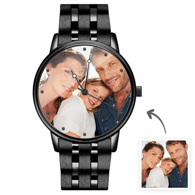 Orologio per la festa del pap - Orologio con foto in lega nera con incisione personalizzata Orologio con foto personalizzato