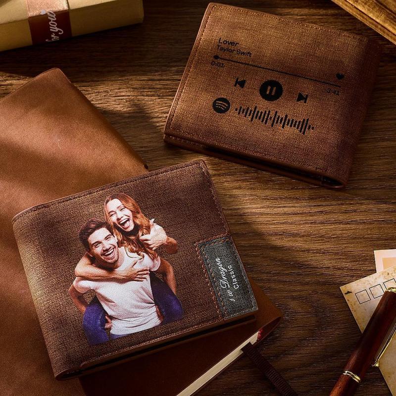 Scannable Spotify Code Wallet Photo Engraved Wallet Memorial Gifts-Brown
