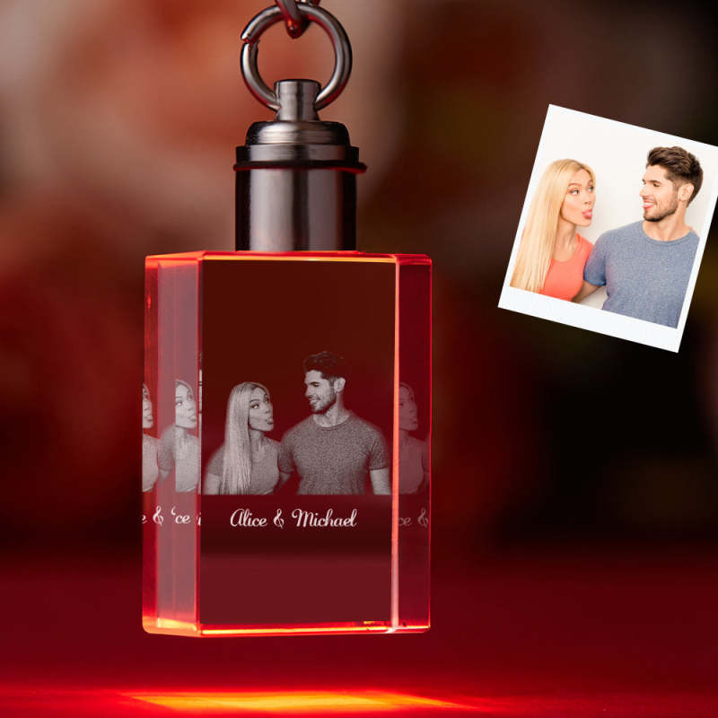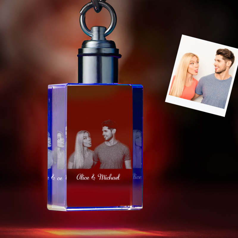 Custom Photo Crystal Keychain Couple Keepake Crystal Keychain Rectangle Shape Photo Keychain
