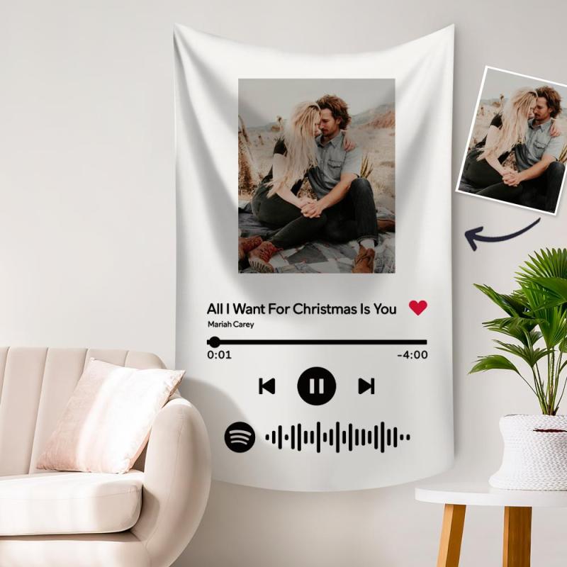 Custom Spotify Blanket on Wall Spotify Music Code Tapestry White 76.2cm*127cm/30in*50in
