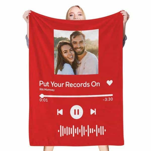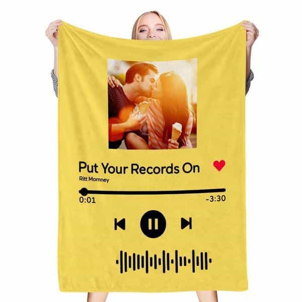 Custom Scannable Song Code Music Blanket Personalized Photo Fleece Blankets White