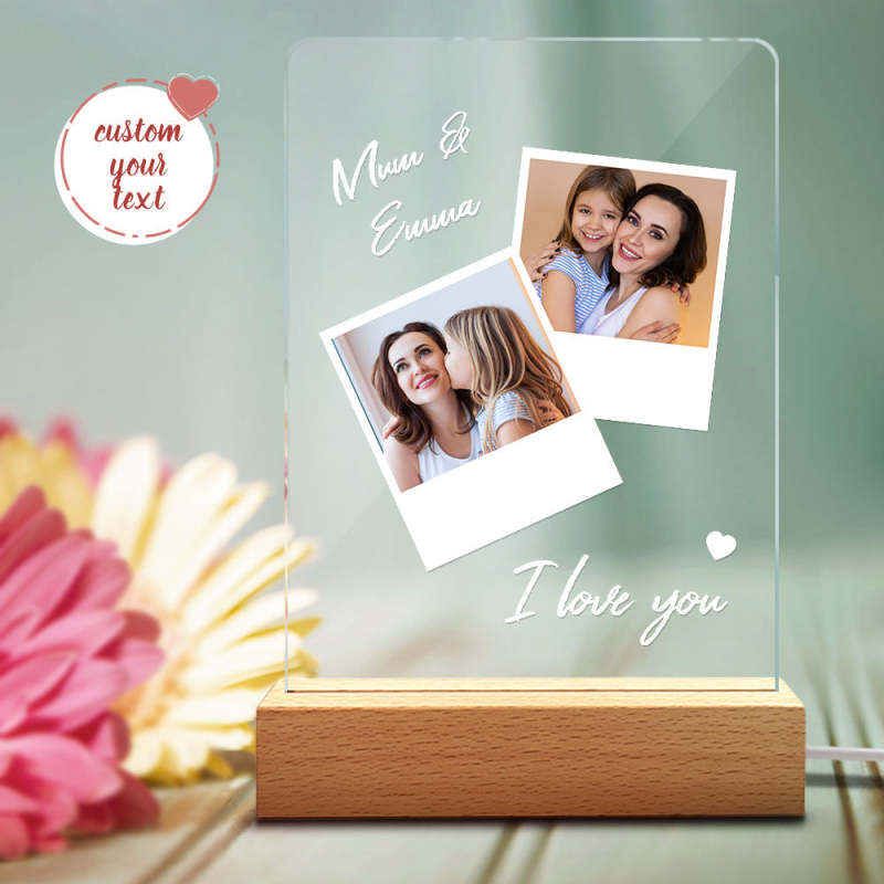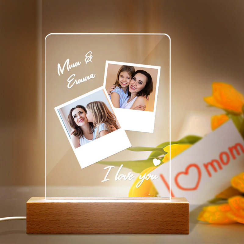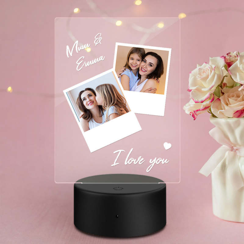 Cadeau Fête des Mères Lampe Acrylique Personnalisée avec Photo et Nom