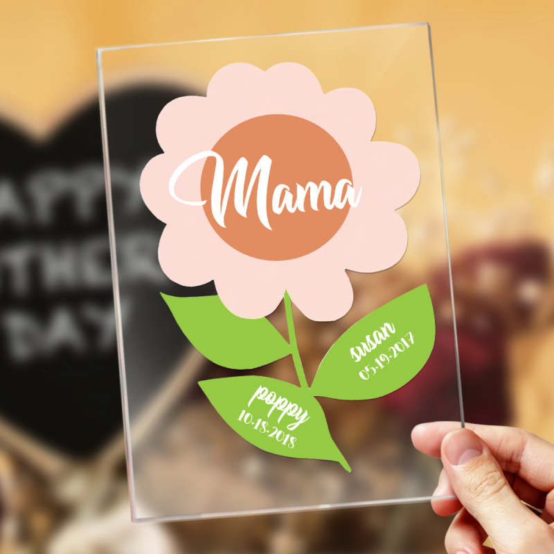 Accueil / Cadeau personnalisé de lampe acrylique de nom et de date pour maman