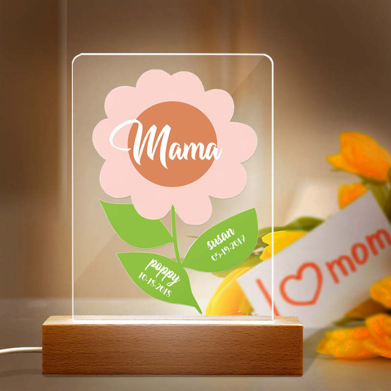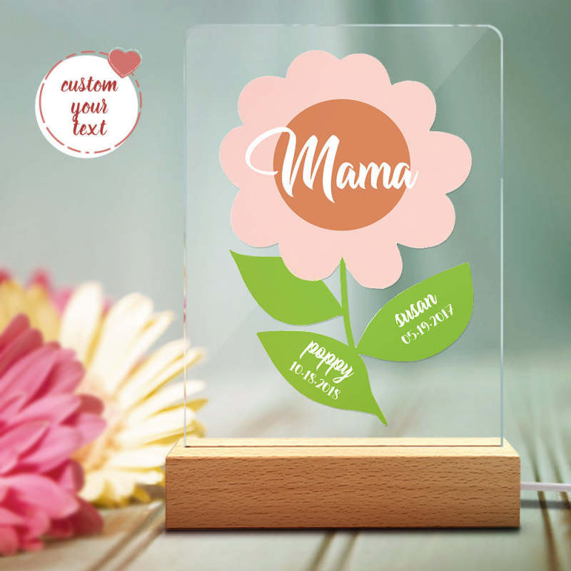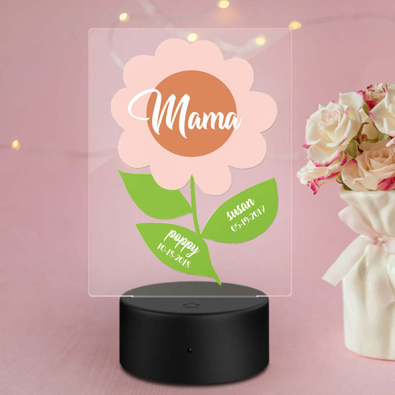 Cadeau personnalisé de lampe acrylique de nom et de date pour maman