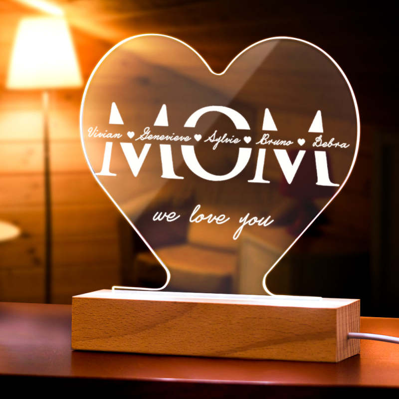 Luce notturna personalizzata per il nome della famiglia per il regalo della mamma
