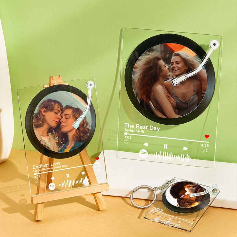 Custom LGBT Gift Spotify Plaque and Keychain Personalized Rotatable Photo Vintage Record Scannable Spotify Music Code Plaque