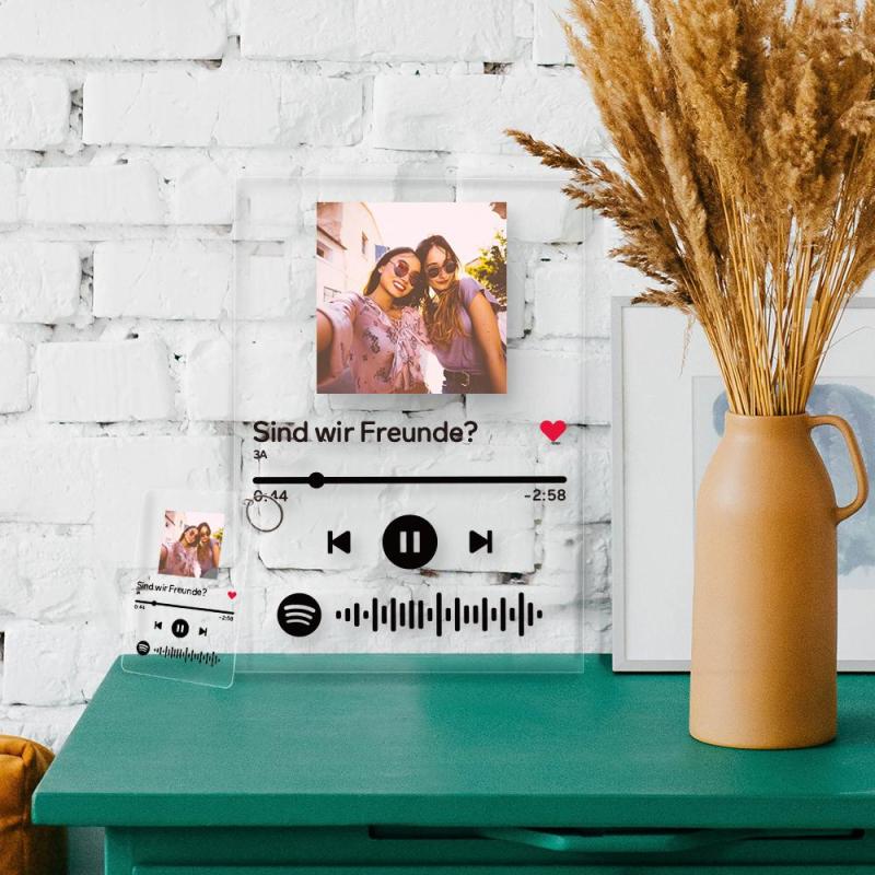 Accueil / Custom Spotify Code Glass Photo Plaque and Keychain Set For Friends