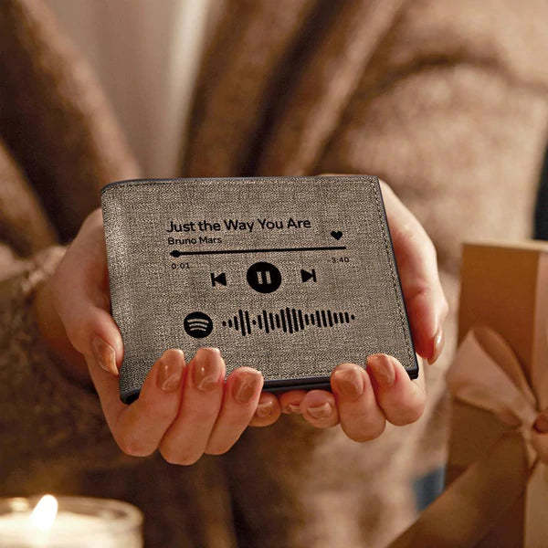 Scannable Spotify Code Wallet Photo Engraved Wallet Custom Music Song Wallet Memorial Gifts